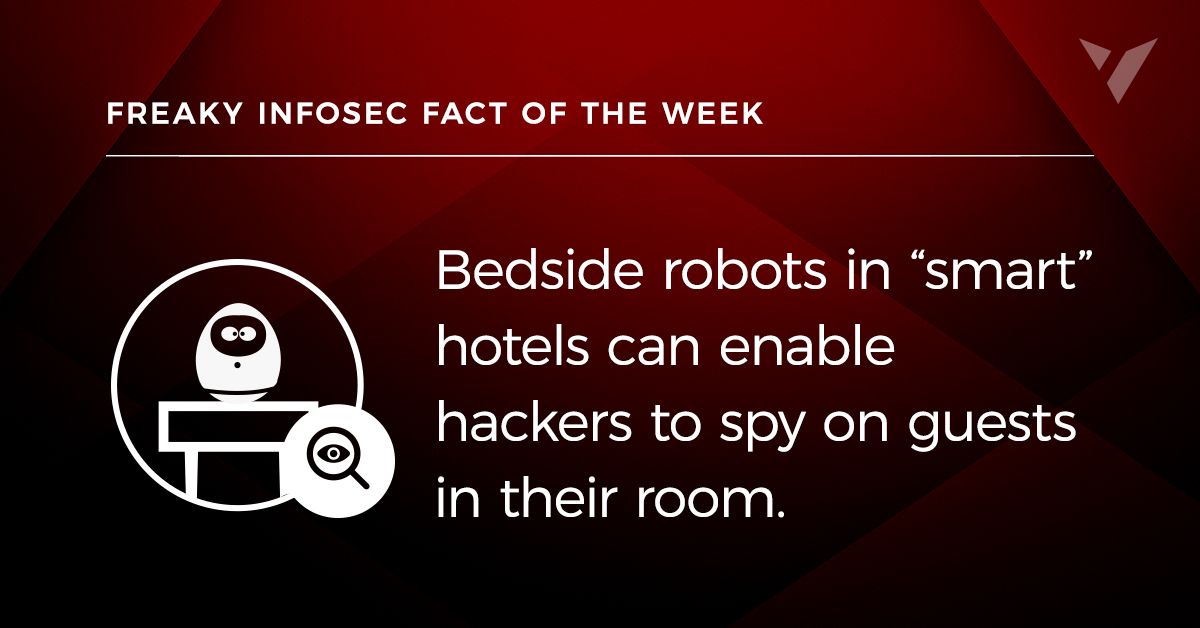 Earlier this year, a security researcher found a critical vulnerability in an in-room robot used by a Japanese hotel chain. The flaw could allow a malicious hotel guest to embed a backdoor in the robot, making it possible to remotely spy on future guests.