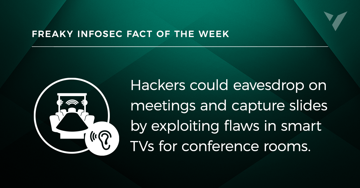 Hackers could eavesdrop on meetings and capture slides by exploiting flaws in smart TVs for conference rooms.